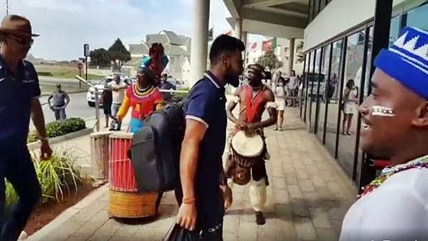 இந்நிலையில், பிப்ரவரி 13-ந் தேதி செயின்ட் ஜார்ஜ் பார்க்கில் நடைபெறும் 5-ஆவது போட்டியில் பங்கேற்க இந்திய அணி போர்ட் எலிசபத் நகருக்கு வருகை தந்தது. அப்போது அப்பகுதியின் பாரம்பரிய முறைப்படி இந்திய அணிக்கு வரவேற்பு அளிக்கப்பட்டது.