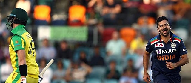 கான்பெராவில் மிக நன்றாகப் பந்துவீசிய ஷர்துல் தாக்குர், இந்திய டி20 அணியில் இடம் பிடிக்காததால் நாடு திரும்புகிறார்.