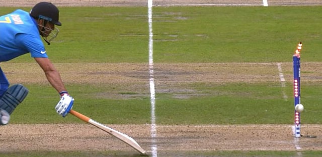 10 பந்துகளில் 25 ரன்கள் தேவை என்கிற நிலையில் இந்திய அணி இருந்தபோது 50 ரன்களில் இருந்த தோனி ரன் அவுட் ஆனார். சில அங்குல இடைவெளியில் தோனி ரன் அவுட் ஆனது இந்திய ரசிகர்களுக்கு அதிர்ச்சியை ஏற்படுத்தியது. ஒருவேளை தோனி ரன் அவுட் ஆகாமல் இருந்திருந்தால் இந்திய அணி அரையிறுதியில் வென்றிருக்கவும் வாய்ப்பிருந்தது.