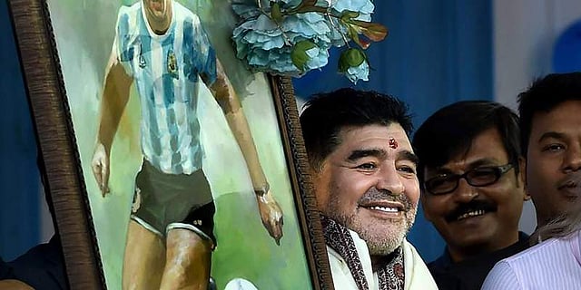 கடந்த 2017-ஆம் ஆண்டு அறக்கட்டளை ஒன்று நடத்திய கால்பந்து ஆட்டத்துக்காக மாரடோனா கொல்கத்தா வந்திருந்தார். அப்போது அவர் செளரவ் கங்குலி தலைமையிலான அணிக்கு எதிராக விளையாடினார்.