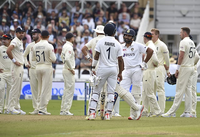 இங்கிலாந்து, இந்தியா அணிகளுக்கிடையிலான முதல் டெஸ்ட் ஆட்டம் டிரென்ட் பிரிட்ஜில் நடைபெற்று வருகிறது. டாஸ் வென்று முதலில் பேட் செய்த இங்கிலாந்து 183 ரன்களுக்கு ஆட்டமிழந்தது.