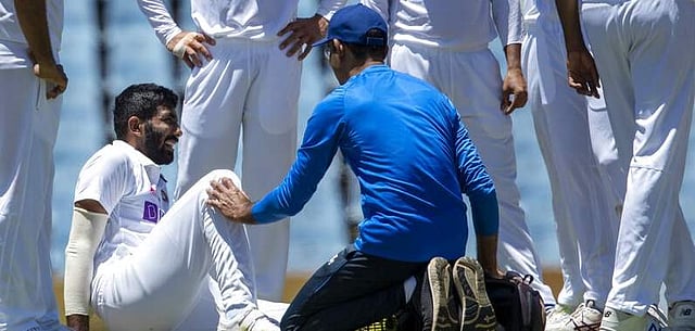 பும்ரா தனது 6-வது ஓவரை வீசியபோது அவருக்குக் காயம் ஏற்பட்டது. பந்துவீசி முடிக்கும்போது கால் இடறியதால் கணுக்காலில் காயம் ஏற்பட்டது. இதையடுத்து உடனடியாக ஓய்வறைக்குச் சென்று சிகிச்சை மேற்கொண்டார். காயத்திலிருந்து மீண்ட பும்ரா மீண்டும் மைதானத்துக்குள் வந்தார். பிறகு வழக்கம்போல பந்துவீசி கடைசி விக்கெட்டையும் எடுத்தார்.