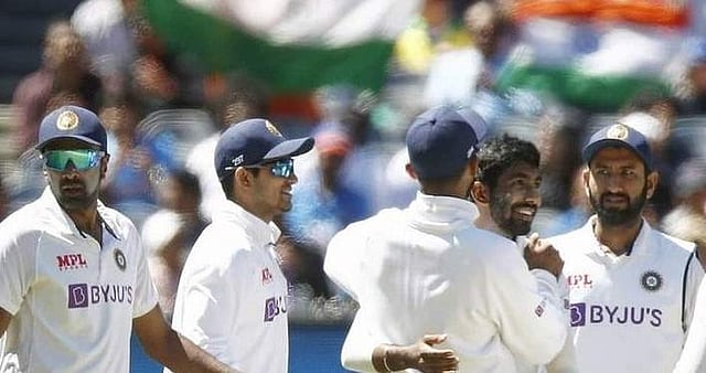உலக டெஸ்ட் சாம்பியன்ஷிப் ஆட்டத்தில் இந்திய அணி வீரர்கள் கையில் கருப்புப் பட்டை அணிந்து விளையாடுகிறார்கள்.