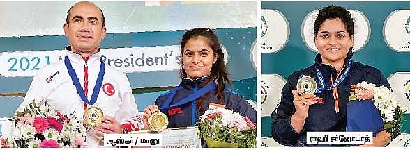 இந்த இரு பதக்கங்களுக்கு முன்பாக, ஆடவருக்கான 10 மீட்டா் ஏா் பிஸ்டல் பிரிவில் சௌரவ் சௌதரி வெள்ளியும், அபிஷேக் வா்மா வெண்கலமும் வென்றிருந்தனா். 10 மீட்டா் ஏா் பிஸ்டல் கலப்பு அணிகள் பிரிவில் மானு பாக்கா், ஈரானின் ஜாவத் ஃபரூக்கியுடன் இணைந்து தங்கம் வென்றது நினைவுகூரத்தக்கது.