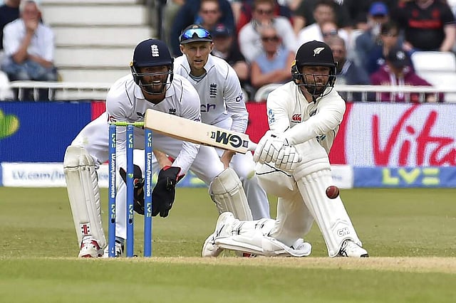லார்ட்ஸில் நடைபெற்ற முதல் டெஸ்டில் இங்கிலாந்து அணி வெற்றி பெற்று 1-0 என முன்னிலை வகிக்கிறது. 2-வது டெஸ்ட் நாட்டிங்கமில் நடைபெற்று வருகிறது. டாஸ் வென்ற இங்கிலாந்து அணி ஃபீல்டிங்கைத் தேர்வு செய்தது. நியூசி. கேப்டன் கேன் வில்லியம்சனுக்கு கரோனா பாதிப்பு ஏற்பட்டதால் இந்த டெஸ்டில் அவர் பங்கேற்கவில்லை.