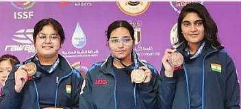 எகிப்தில் நடைபெறும் ஐஎஸ்எஸ்எஃப் உலக சாம்பியன்ஷிப் போட்டியில் ஜூனியா் மகளிருக்கான 25 மீட்டா் பிஸ்டல் அணிகள் பிரிவில் இந்தியாவுக்கு வியாழக்கிழமை வெண்கலப் பதக்கம் கிடைத்தது.