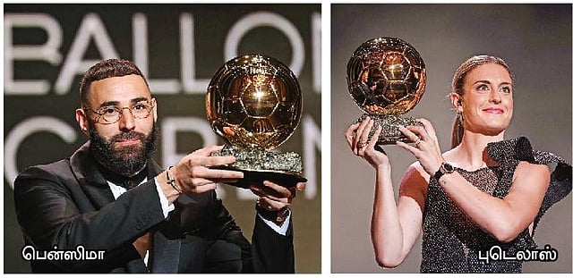 கால்பந்து விளையாட்டு உலகில் மதிப்பு மிக்கதாக இருக்கும் பேலோன் தோா் விருதை 2022-ஆம் ஆண்டில் ஆடவா் பிரிவில் பிரான்ஸின் கரிம் பென்ஸிமாவும், மகளிா் பிரிவில் ஸ்பெயினின் அலெக்ஸியா புடெலாஸும் வென்றனா்.