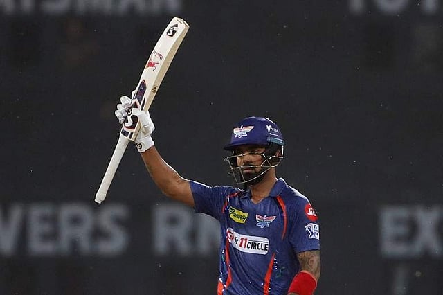 இதனையடுத்து. லக்னௌ முதலில் பேட்டிங் செய்தது. அந்த அணியில் தொடக்க ஆட்டக்காரர்களாக கேப்டன் கே.எல்.ராகுல் மற்றும் கைல் மேயர்ஸ் களமிறங்கினர். கைல் மேயர்ஸ் 29 ரன்களில் ஆட்டமிழந்தார். அதன் பின் களமிறங்கிய வீரர்களில் தீபக் ஹூடா (2 ரன்கள்), க்ருணால் பாண்டியா (18 ரன்கள்), நிகோலஸ் பூரன் (0) கிருஷ்ணப்ப கௌதம் (1 ரன்) மற்றும் மார்கஸ் ஸ்டோய்னிஸ் (15 ரன்கள்) ஆட்டமிழந்தனர். மற்ற வீரர்கள் வந்த வேகத்தில் ஆட்டமிழந்து பெவிலியன் திரும்பிய வண்ணமே இருக்க கேப்டன் கே.எல்.ராகுல் நிலைத்து நின்று விளையாடி 74 ரன்கள் குவித்து ஆட்டமிழந்தார். அதில் 8 பவுண்டரிகள் மற்றும் ஒரு சிக்ஸர் அடங்கும்.