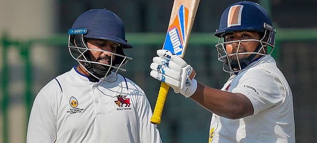 தில்லியில் மும்பை - தில்லி அணிகளுக்கு இடையிலான ரஞ்சி கோப்பை ஆட்டம் நடைபெற்று வருகிறது. டாஸ் வென்ற தில்லி அணி ஃபீல்டிங்கைத் தேர்வு செய்தது. முதல் நான்கு விக்கெட்டுகளை 66 ரன்களுக்கு இழந்து தடுமாறியது மும்பை அணி. இதன்பிறகு சர்ஃபராஸ் கான், மும்பை அணியைச் சரிவிலிருந்து காப்பாற்றினார். அற்புதமாக விளையாடி மீண்டும் சதமடித்தார். 135 பந்துகளில் சதத்தைப் பூர்த்தி செய்தார். இதனால் 5 விக்கெட் இழப்புக்கு 250 ரன்களைக் கடந்தது மும்பை அணி.