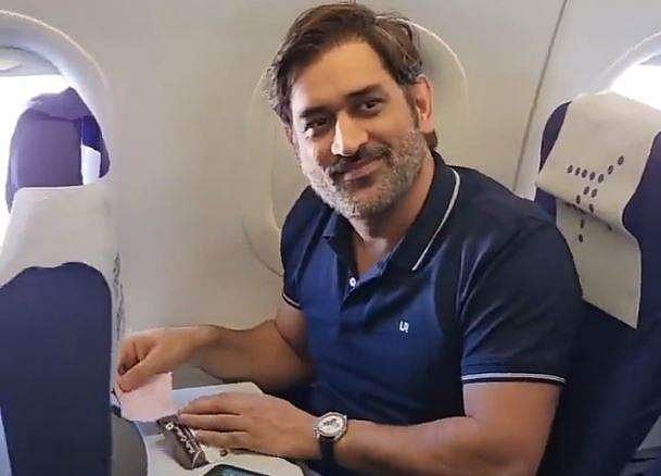இண்டிகோ விமானத்தில் தோனி அவரது மனைவியுடன் பயணம் செய்யும் விடியோ ஒன்று ஞாயிற்றுக்கிழமை வைரலானது. விமானத்தில் டேப்புடன் அமர்ந்திருந்த தோனியின் அருகில் சென்ற விமானப் பணிப்பெண் அவருக்கு சாக்லெட்டை பரிசாக வழங்கினார்.