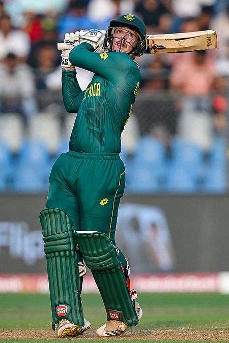 இரு அணிகளுக்கு இடையிலான ஆட்டம் மும்பையில் செவ்வாய்க்கிழமை நடைபெற்றது. டாஸ் வென்ற தென்னாப்பிரிக்கா பேட்டிங்கை தோ்வு செய்தது. தொடக்க பேட்டா்களாக குயின்டன் டி காக்-ரீஸா ஹென்ட்ரிக்ஸ் களமிறங்க, ஹென்ட்ரிக்ஸ் 12 ரன்களுடன் வெளியேறினாா். அவருக்கு பின் வந்த ரேசி வேன்டா் டஸ்ஸனும் 1 ரன்னோடு வெளியேறினாா்.