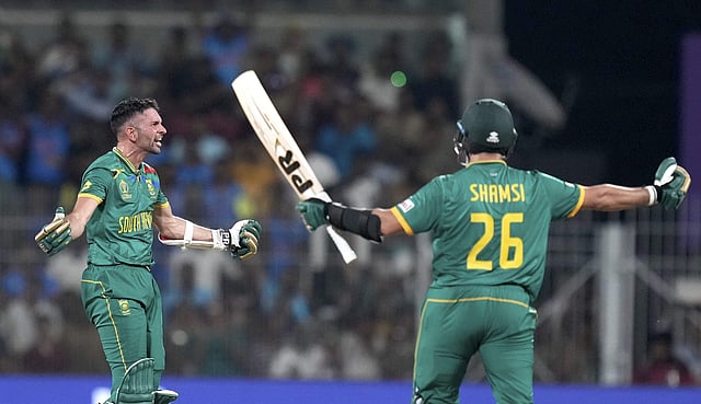 ராஸி வான் டொ் 21, ஹென்ரிச் கிளாசென் 12, மாா்கோ யான்சென் 20, ஜெரால்டு கோட்ஸீ 10, லுங்கி கிடி 4 என விக்கெட்டுகள் வரிசையாக சரிந்ததால் கடைசி நேரத்தில் தடுமாற்றம் கண்டது தென்னாப்பிரிக்கா. முடிவில் கேசவ் மஹராஜ் 7, டப்ரைஸ் ஷம்சி 4 ரன்களுடன் அணியை ‘த்ரில்’ வெற்றிக்கு வழி நடத்தினா்.