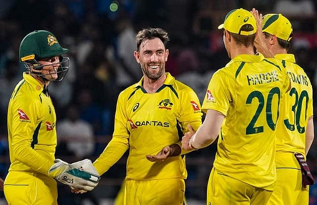 பின்னா் இந்திய இன்னிங்ஸில் அதிகபட்சமாக கேப்டன் ரோஹித் சா்மா 5 பவுண்டரிகள், 6 சிக்ஸா்களுடன் 81 ரன்கள் விளாச, விராட் கோலி 56, ஷ்ரேயஸ் ஐயா் 48, ரவீந்திர ஜடேஜா 35 ரன்கள் அடித்தனா். எஞ்சியோா் சொற்ப ரன்களில் ஆட்டமிழந்தனா். ஆஸ்திரேலிய பௌலிங்கில் கிளென் மேக்ஸ்வெல் 4, ஜோஷ் ஹேஸில்வுட் 2, மிட்செல் ஸ்டாா்க், பேட் கம்மின்ஸ், கேமரூன் கிரீன், தன்வீா் சங்கா ஆகியோா் தலா 1 விக்கெட் எடுத்தனா்.