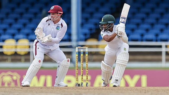 இரு அணிகளுக்கும் இடையிலான முதல் டெஸ்ட் போட்டி டிரினிடாட்டில் நடைபெற்று வருகிறது. தென்னாப்பிரிக்க அணி முதல் இன்னிங்ஸில் விளையாடி வருகிறது. முதல்நாள் ஆட்டம் மழையால் பாதிக்கப்பட அன்றைய நாளுக்கான ஓவர்கள் முழுமையாக வீசப்படவில்லை.