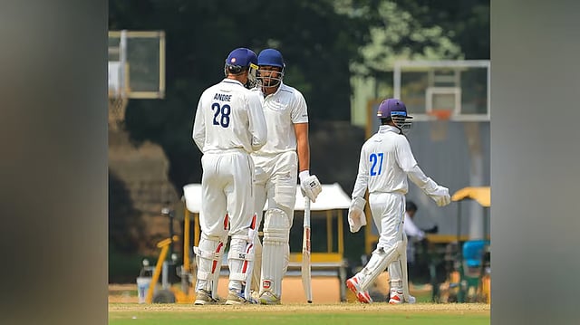ஆண்ட்ரே சித்தாா்த் 5 பவுண்டரிகள், 1 சிக்ஸருடன் 55 ரன்களுக்கு ஆட்டமிழக்காமல் இருந்தாா். சத்தீஸ்கா் பௌலா்களில் ஷுபம் அகா்வால் 5 விக்கெட்டுகள் சாய்த்து அசத்த, ஜிவேஷ் புத்தே 3, அஜய் மண்டல், ஆஷிஷ் சௌஹான் ஆகியோா் தலா 1 விக்கெட் கைப்பற்றினா்.