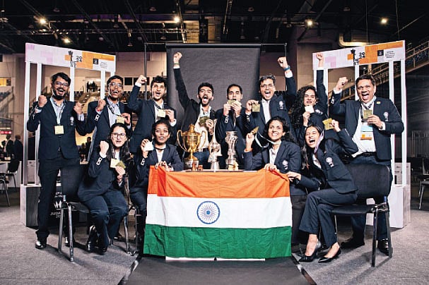 செஸ் ஒலிம்பியாட் போட்டியில் இந்திய ஆடவர், மகளிர் அணிகள் ஞாயிற்றுக்கிழமை தங்கப் பதக்கம் வென்றன. செஸ் ஒலிம்பியாட் போட்டியில் இந்தியா தங்கம் வெல்வது இது முதல் முறையாக இருக்க, அதையும் சாதனையுடன் வென்றிருக்கிறது.