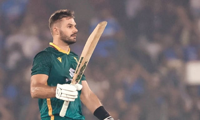 இந்நிலையில் மார்க்ரம், 10 பவுண்டரிகள், 4 சிக்ஸர்களுடன் 110 ரன்களுக்கு வீழ்ந்தார். 5-ஆவது பேட்டராக வந்த டெவால்ட் பிரெவிஸ் அதிரடியாக ரன்கள் சேர்க்க, தென்னாப்பிரிக்கா ஸ்கோர் விறுவிறுவென உயர்ந்தது.