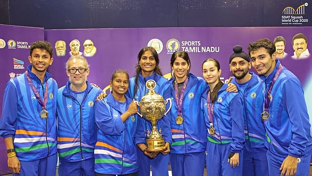 ஸ்குவாஷ் உலகக் கோப்பையை முதல்முறை வென்று வரலாறு படைத்துள்ள இந்திய அணிக்குப் பாராட்டு தெரிவிக்கப்பட்டது.
