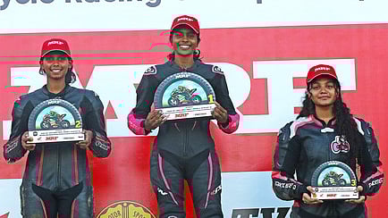 எம்ஆா்எஃப் எம்எம்எஸ்சி எப்எம்எஸ்சிஐ இந்திய தேசிய மோட்டாா் சைக்கிள் பந்தயத்தில் தமிழக வீராங்கனை ஜெகதிஸ்ரீ குமரேசன் முதலிடம் பெற்றாா்.