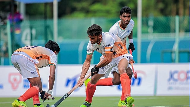 இந்த ஆட்டத்தில் முதலில் இந்தியாவுக்காக அா்ஷ்தீப் சிங் 2-ஆவது நிமிஷத்தில் கோலடிக்க, பி.பி. சுனில் 15-ஆவது நிமிஷத்தில் அதை 2-ஆக அதிகரித்தாா். தொடா்ந்து அராய்ஜீத் சிங் ஹண்டால் 26-ஆவது நிமிஷத்தில் ஸ்கோா் செய்ய, முதல் பாதியை இந்தியா 3-0 முன்னிலையுடன் நிறைவு செய்தது.