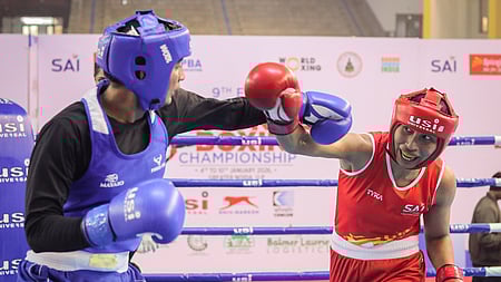மகளிா் பிரிவில் உலக சாம்பியன் மீனாட்சி 45-48 கிலோ பிரிவில் 5-0 என அகில இந்திய போலீஸ் அணியின் மல்லிகாவை வீழ்த்தினாா். 48-51 கிலோ பிரிவில் நிகாத் ஸரீன் 4-1 என உபியின் குஸும் பெகலை வீழ்த்தி இறுதிக்கு தகுதி பெற்றாா்.