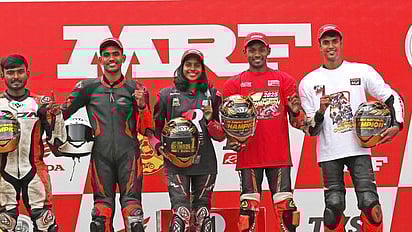 எம்ஆா்எஃப் எம்எம்எஸ்சி எஃப்எம்எஸ்சிஐ தேசிய மோட்டாா் சைக்கிள் காா் பந்தய சாம்பியன்ஷிப் போட்டியில் ஜெகதிஸ்ரீ குமரேசன், ரஹில், சூா்யா, ராஜ் குமாா் சிறப்பிடம் பெற்றனா்.