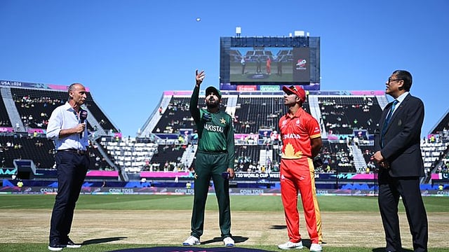 கனடாவுக்கு எதிரான போட்டியில் டாஸ் வென்ற பாகிஸ்தான் அணி பந்துவீச்சைத் தேர்வு செய்துள்ளது.