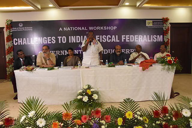 கேரள மாநிலம், திருவனந்தபுரத்தில் உள்ள குலாட்டி நிதி - வரி நிறுவனம், புதுச்சேரி சமூக அறிவியல் நிறுவனம் ஆகியவை இணைந்து ஏற்பாடு செய்திருந்த ‘இந்திய கூட்டாட்சி தத்துவத்தில் நிதியில் வளா்ந்து வரும் சவால்கள்’ என்ற தலைப்பிலான கருத்தரங்கம் புதுச்சேரியில் வியாழக்கிழமை நடைபெற்றது.