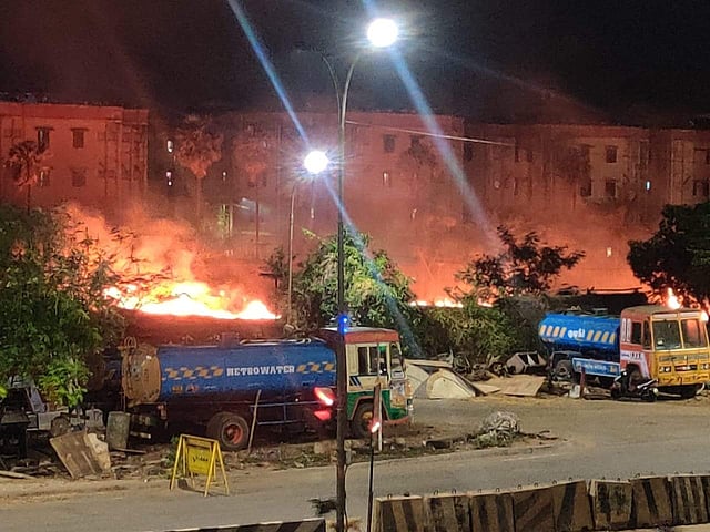 தமிழ்நாடு கனிமவள நிறுவனத்திற்கு சொந்தமான இந்த இடத்தில் காய்ந்து போன புற்கள், மரங்கள் உள்ளிட்டவைகளால் புதர் போல் காட்சி அளித்த இப்பகுதியில் உடனே தீப்பற்றி மளமளவென எரியத் தொடங்கியது. மேலும் காற்றின் வேகம் அதிகமாக இருந்ததால் தீயினால் ஏற்பட்ட புகை மண்டலம் சுனாமி குடியிருப்பு பகுதியில் முழுவதுமாக பரவியது.