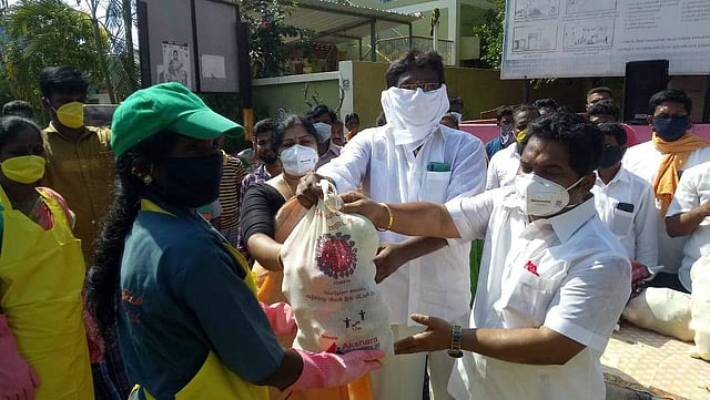 கும்மிடிப்பூண்டி அடுத்த ஈகுவார்பாளையம் ஊராட்சி சார்பில் 300வட மாநிலத்தவர் உள்ளிட்ட 1650 குடும்பத்தினருக்கு 10 கிலோ அரிசி, மளிகை, காய்கறிகள் என 21 பொருட்கள் அடங்கிய நிவாரண தொகுப்பு வழங்கப்பட்டது.