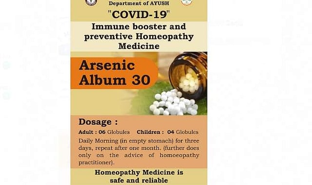 கரோனா தொற்று பரவுதலை எதிர்த்தும் போராடும் தருணத்தில் நோய் எதிர்ப்பு சக்தியை அதிகரிக்க ஆர்சனிக் ஆல்பம் 30 என்ற ஹோமியோபதி மருந்தைப் பயன்படுத்த மத்திய, மாநில அரசுகள் பரிந்துரை செய்துள்ளன. இந்த மருந்தை அனைத்து அரசு மருத்துவமனைகளில் உள்ள ஹோமியோ மருந்தகங்களில் மக்களுக்கு வழங்க வேண்டும் என இந்திய ஹோமியோபதி மருத்துவக் குழு (ஐஹெச்எம்எல்) கேட்டுக் கொண்டுள்ளது.