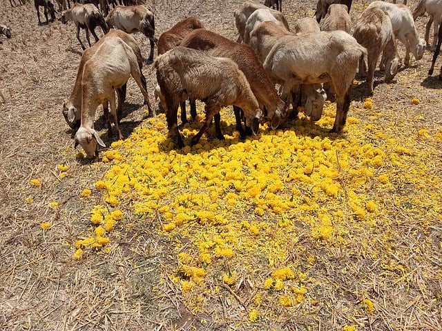 அலங்காநல்லூா் பகுதியில் அறுவடைக்குத் தயாரான பூக்களைப் பறிக்க முடியாததால் வேறு வழியின்றி விவசாயிகள் கால்நடைகளுக்கு உணவாக வழங்கி வருகின்றனா்.