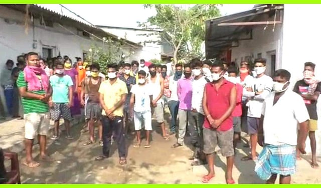 திருப்பூரில் உள்ள தனியார் பின்னலாடை நிறுவனத்தில் பணியாற்றி வந்த வடமாநிலத் தொழிலாளர்கள் 95 பேர் உணவு இல்லாமல், செலவுக்கு பணம் இல்லாமலும் குழந்தைகளுடன் தவித்து வருகின்றனர்.