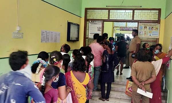 திருவள்ளூர் மாவட்டம் எல்லாபுரம் ஒன்றியத்தில் சத்துணவு அமைப்பாளர் மற்றும் உதவியாளர் பணிக்கு விண்ணப்பங்களைக் கொடுக்க கூட்டம் அலைமோதியது.