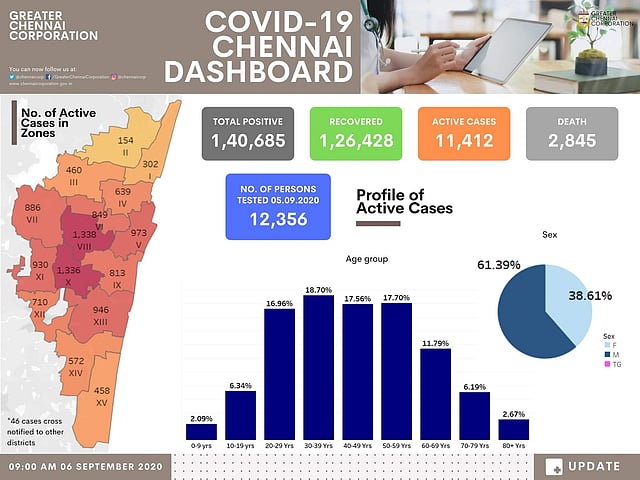 சென்னையில் மொத்தம் உள்ள 15 மண்டலங்களில் கரோனா சிகிச்சை பெற்று வருவோர், குணமடைந்தவர்கள் மற்றும் உயிரிழந்தோர் குறித்த விவரங்களை சென்னை மாநகராட்சி வெளியிட்டுள்ளது.