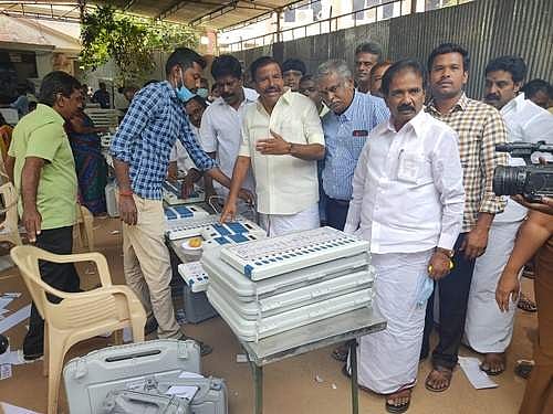 திருச்சி: திருச்சி மாவட்டத்தில் உள்ள 9 பேரவைத் தொகுதிகளுக்கு நடைபெறும் தேர்தலுக்கு பயன்படுத்தப்படும் வாக்குப்பதிவு இயந்திரங்கள் தகுதியாக உள்ளதா என்பது குறித்து அரசியல் கட்சிகளின் முன்னிலையில் சரிபார்க்கும் பணி நடைபெறுகிறது. இந்தப் பணிகளை முன்னாள் அமைச்சரும், திமுக முதன்மைச் செயலருமான கே. என். நேரு சனிக்கிழமை நேரில் பார்வையிட்டு ஆய்வு செய்தார்.