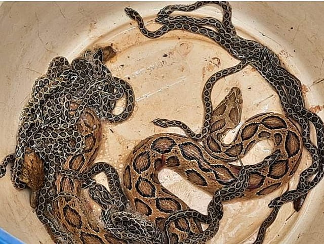 அந்தியூர் வனச்சரகம், அத்தாணி பிரிவு, அத்தாணி கிழக்கு பீட் செயல் அந்தியூர் எல்லைக்குட்பட்ட ஆப்பக்கூடல் - கூத்தம்பூண்டி பகுதியைச் சேர்ந்தவர் சந்திரமோகன் (43). இவருக்குச் சொந்தமான விவசாயத் தோட்டத்தில் கண்ணாடி விரியன் பாம்பு மற்றும் 30 குட்டிகளுடன் இருப்பதைக் கண்டு அந்தியூர் வனத்துறையினருக்கு தகவல் தெரிவித்தார். சம்பவ இடத்திற்கு விரைந்த அந்தியூர் வனச்சரகர் உத்தரசாமி மற்றும் வனத்துறையினர் பாம்புகள் அனைத்தையும் பிடித்து அந்தியூர் வனச்சரக அலுவலகத்துக்கு கொண்டு வந்தனர்.