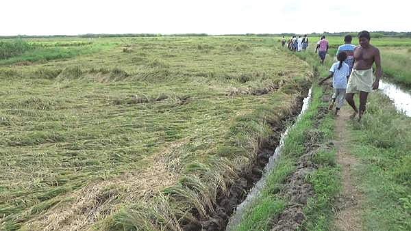 இதனால் நெல் மணிகள் முளைத்த நெற்பயிர்கள் வயல்களிலேயே சாய்ந்து தண்ணீரில் மூழ்கி விட்டன. இ்வவாறு 200 ஏக்கருக்கு மேல் பாதிப்பு ஏற்பட்டுள்ளது.