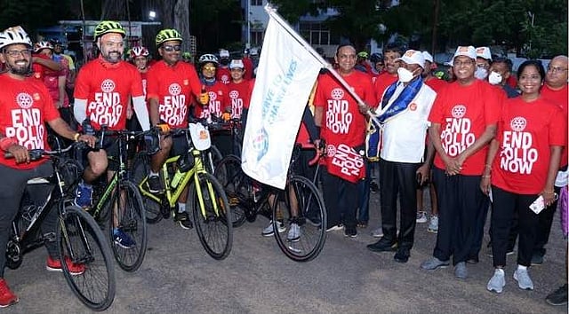 சென்னை இராணிமேரி கல்லூரி அருகில் சென்னை கீழ்ப்பாக்கம் ரோட்டரி கிளப் சார்பில் போலியோ விழிப்புணர்வை ஏற்படுத்துவதற்காக மிதிவண்டி பிரச்சாரப் பயணத்தை மக்கள் நல்வாழ்வுத்துறை அமைச்சர் மா.சுப்பிரமணியன் இன்று தொடங்கி வைத்தார். நிகழ்ச்சிக்குப் பிறகு செய்தியாளர்களுக்கு பேட்டியளித்த அவர், உலக போலியோ தினம் இன்று கடைப்பிடிக்கப்படுகிறது.