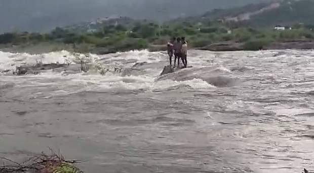 மேட்டூர் அணை வெள்ளத்தில் சிக்கிய 3 இளைஞர்களும் பத்திரமாக மீட்கப்பட்டனர்.