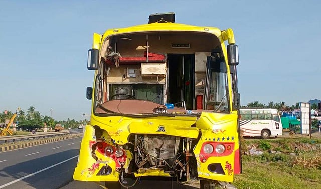 இந்நிலையில், பெருந்துறையில் இருந்து அரியலூர் நோக்கி சென்ற சிமெண்ட் பல்கர் லாரி விபத்து நடந்த பகுதியில் நின்று கொண்டிருந்தபோது, பெங்களூரில் இருந்து வேளாங்கண்ணி நோக்கி சென்ற சொகுசுப் பேருந்து, பல்கர் லாரி மீது பலமாக மோதியது. இந்த விபத்தில் அதிர்ஷ்டவசமாக சொகுசு பேருந்தில் இருந்த பயணிகள் அனைவரும் காயமின்றி உயிர் தப்பினர்.