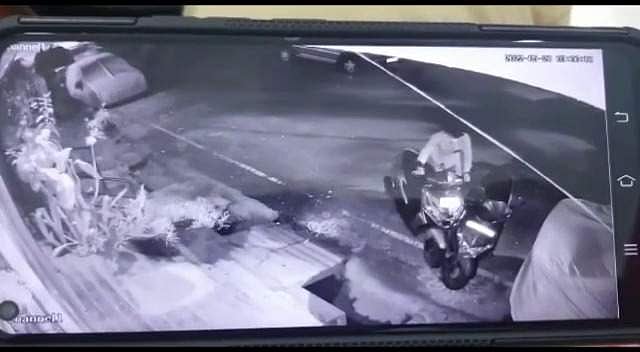 அதிகாலை 3 மணி அளவில் அவ்வழியாக பைக்கில் வந்த இரண்டு மர்ம நபர்களில் ஒருவன் இறங்கி வீட்டின் முன்பு நிறுத்தி வைக்கப்பட்டிருந்த பைக்கின் சைடு லாக்கை உடைத்து திருட முயற்சிக்கிறான். ஆனால் 2 பைக்குகளுக்கும் ஒயர்லாக் போட்டு பூட்டியுள்ளதால் வண்டியை எடுக்க முடியவில்லை. இதனையடுத்து அந்த மர்ம நபர்கள் இருவரும் வாகனத்தை திருடாமல் ஏமாற்றத்துடன் அங்கிருந்து தப்பிச் செல்கின்றனர். இந்த காட்சிகள் அனைத்தும் அந்த வீட்டில் பொருத்தப்பட்டிருந்த சிசிடிவி கேமராவில் பதிவாகியுள்ளது.