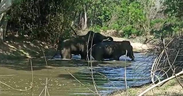 அப்போது உடனிருந்த மற்றொரு ஆண் யானை தும்பிக்கையால் தள்ளி மேலே செல்ல உதவியது. ஆனால், யானையின் கால்கள் சேறில் சிக்கியதால் அது நகர்ந்து செல்லமுடியாமல் அதே இடத்தில் நின்றது. பக்கத்தில் இருந்த யானை மீண்டும் அதன் தும்பிக்கையால் சேற்றில் சிக்கிய யானையை மீட்க மேற்கொண்ட முயற்சி தோல்வியில் முடிந்தது.
