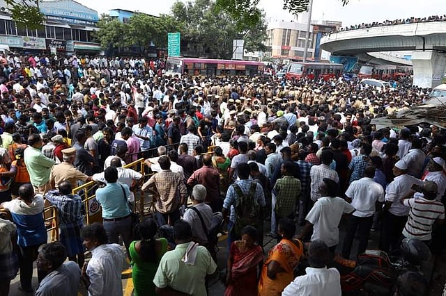கோயம்பேடு மேம்பாலம், கட்சி அலுவலகம் உள்ளிட்ட பகுதிகளில் ஆயிரக்கணக்கான மக்கள் திரண்டுள்ளனர். ரசிகர்களின் வருகையால் சென்னை கோயம்பேடு பகுதியில் கடும் போக்குவரத்து நெரிசல் ஏற்பட்டுள்ளது.