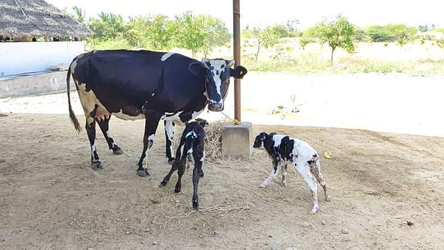 ஆனால் இலுப்பூர் தனியார் வேளாண் கல்லூரியில் வளர்த்த பசுமாடு இரண்டு கன்றுகளை ஈன்றுள்ளது என்பது கல்லூரி மாணவர்களிடம் ஆச்சர்யத்தை ஏற்படுத்தியுள்ளது.