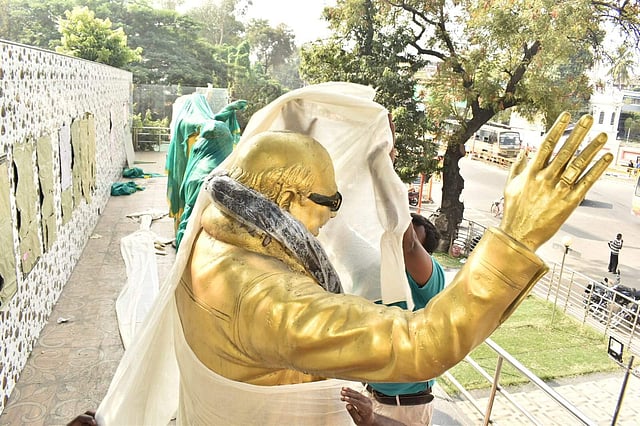 தொடர்ந்து இன்று பன்னீர்செல்வம் பூங்காவிலுள்ள முன்னாள் முதல்வர்களான அண்ணா, கருணாநிதி, எம்.ஜி.ஆர், ஜெயலலிதா ஆகியோரின் முழுவுருவச் சிலைகளை மாநகராட்சி ஊழியர்கள் துணிகளைக் கொண்டு சுற்றி மறைத்தனர்.