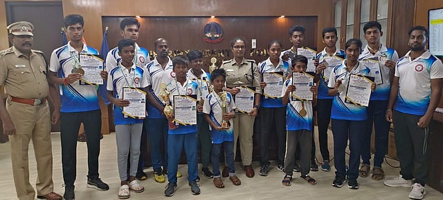 அப்பொழுது விளையாட்டு வீரர்களிடம் பேசிய மாவட்ட காவல் கண்காணிப்பாளர் செல்வி கிரண் ஸ்ருதி மேலும் பல வெற்றிகளை பெற்று பல விருதுகளை பெற வேண்டும் என வாழ்த்தினார். அப்போது பயிற்சியாளர்கள் சிவகுமார், தர்ஷன் ஆகியோர் உடனிருந்தனர்.