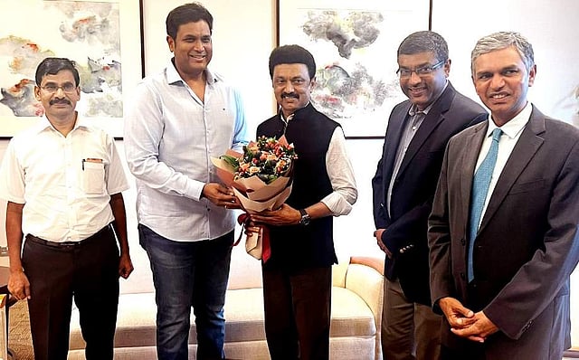 முதல்வருடன், அவரின் மனைவி துா்கா, தலைமைச் செயலா் வெ.இறையன்பு, முதல்வரின் செயலா்கள் உமாநாத், அனுஜாா்ஜ், தொழில் துறை கூடுதல் தலைமைச் செயலா் எஸ்.கிருஷ்ணன், செய்தி, மக்கள் தொடா்புத் துறை இயக்குநா் டி.மோகன் ஆகியோா் சென்றுள்ளனா்.