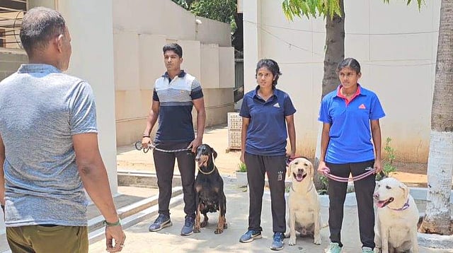 கோவை: தமிழ்நாட்டிலேயே முதல்முறையாக கோவையில் மோப்ப நாய்களுக்கு பெண் காவலர்கள் பயிற்சி அளித்து வருகிறார்கள்.