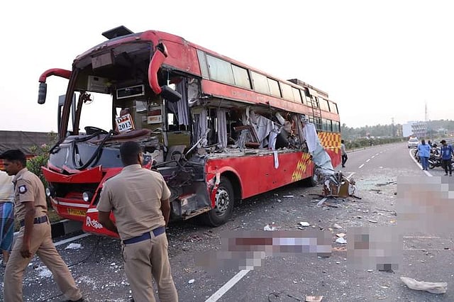 இந்த விபத்தில் ஆம்னி பேருந்தில் இடது புறம் முழுவதுமாக சேதம் அடைந்தது. பேருந்தில் தூங்கியவாறு பயணம் செய்து கொண்டிருந்த 10-க்கும் மேற்பட்டோர் பலத்த காயமடைந்தனர்.